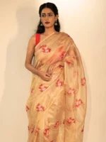 Be the first to review “Gold Tissue Silk Saree highlighted with Beautiful cross stitch embroidery”