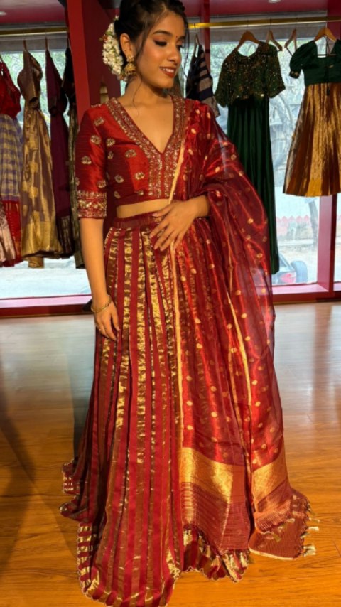 • Handwoven Silk Lehenga comes with Embroidered Silk Blouse