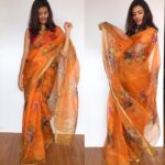 Dark Orange Kota Silk Saree with Beautiful Floral Prints