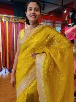 Be the first to review “Mustard Yellow Organza Silk Saree with Sequins Embroidered Border”