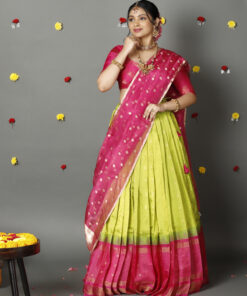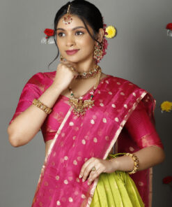 Magenta Silk Half Saree Set with Tissue Silk Dupatta (Set of 3)
