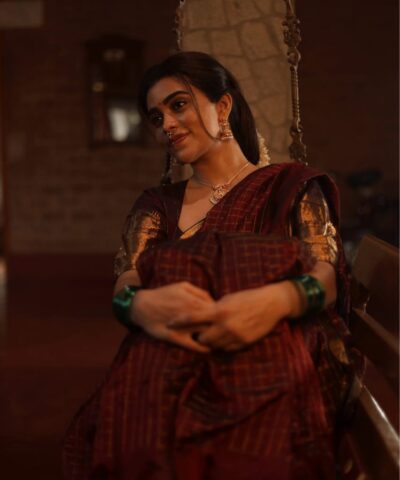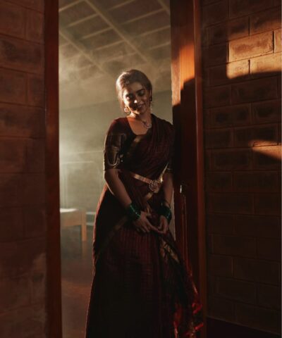 Brown Mangalagiri Silk Saree woven in Gold Zari Checks