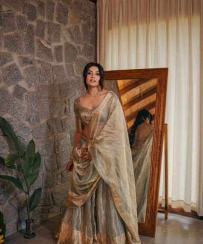 Ivory Embroidered Tissue Silk Lehenga Set of 3