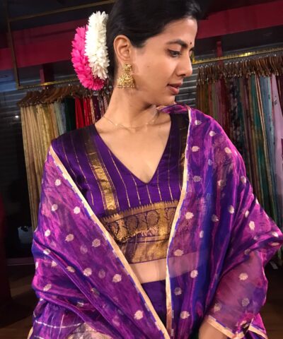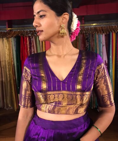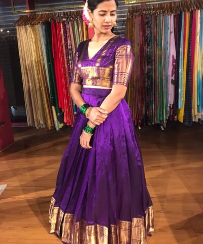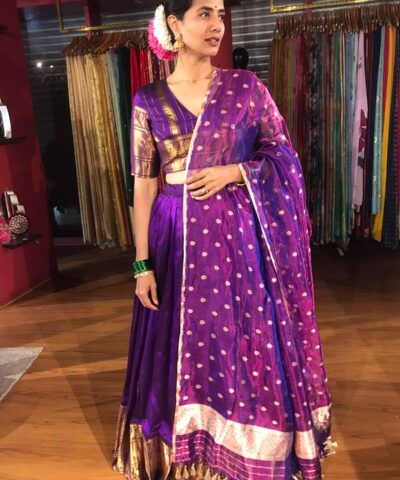 Magenta Purple Silk Half Saree Set with Tissue Silk Dupatta (Set of 3)