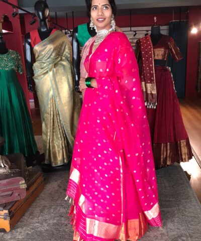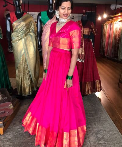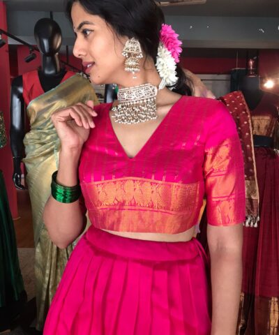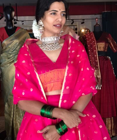 Pink Silk Half Saree Set with Organza Silk Dupatta (Set of 3)