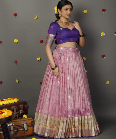 Onion Pink Traditional Tissue Lehenga Set Of 3