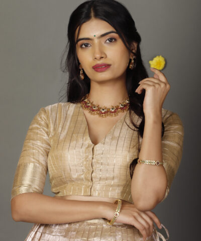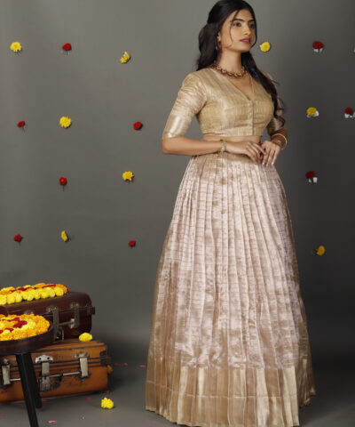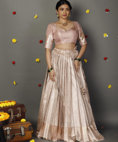 Ivory Striped Tissue Silk Lehenga Set of 2