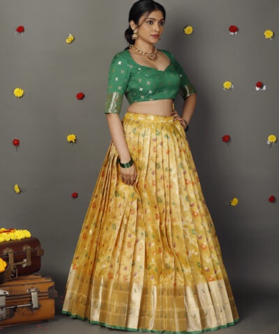 Ivory Embroidered Tissue Silk Lehenga Set of 2