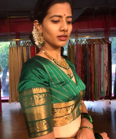 Bottle Green Silk Half Saree Set with Tissue Silk Dupatta (Set of 3)