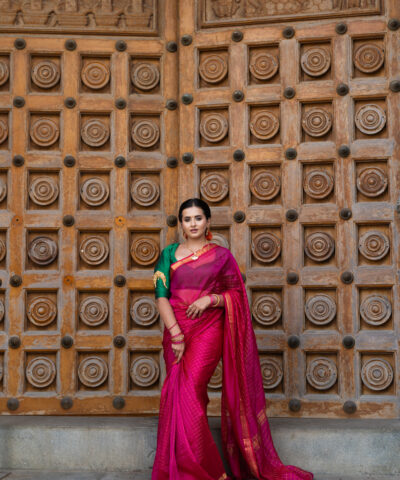 Our sarees are a tribute to the traditional chequered patterns that Mangalgiri sarees are famous for. These Mangalagiri Sarees with Zari Borders and With intricate handwoven details elevate the overall look, making each saree a masterpiece in itself. The blend of classic and modern patterns ensures that our Mangalagiri Silk Sarees are not just an attire but a style statement.