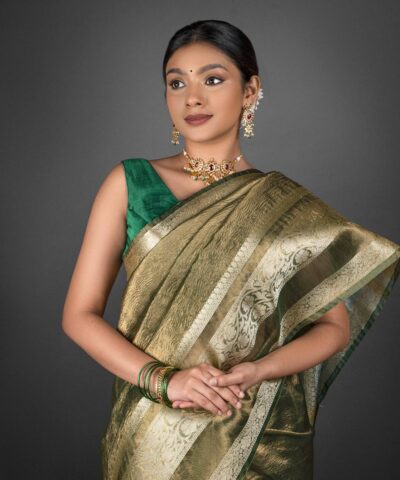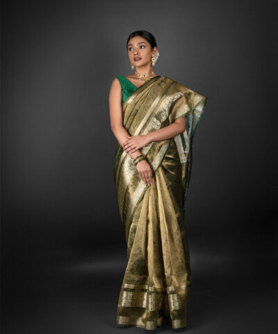 Olive Green Crushed Tissue Silk Saree