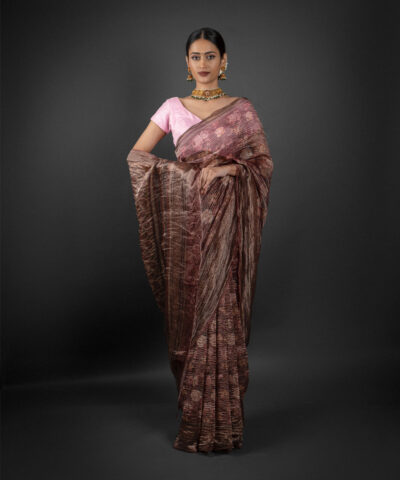 Brown Printed Crushed Tissue Silk Saree