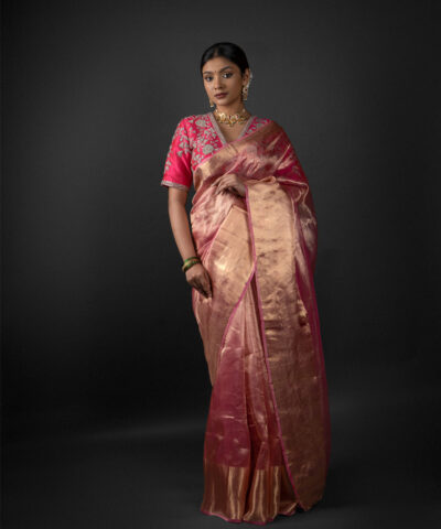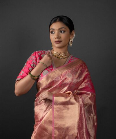 Pink Tissue Silk Saree with Kanchi Gold Zari Weaves