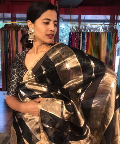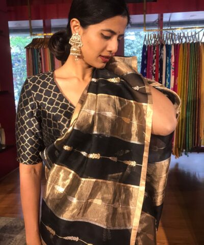 Black Tissue Silk Saree with Beautiful Gold Zari Weaves