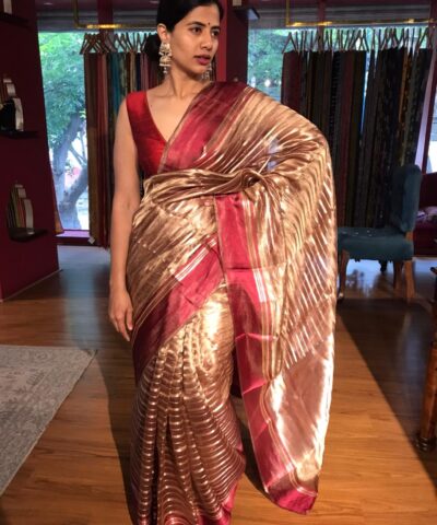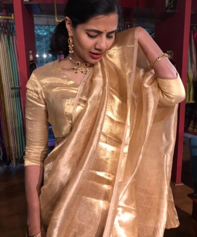 Champagne Gold Tissue Silk Saree with Gold Zari Border