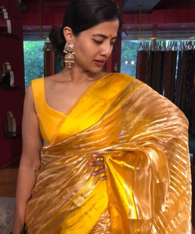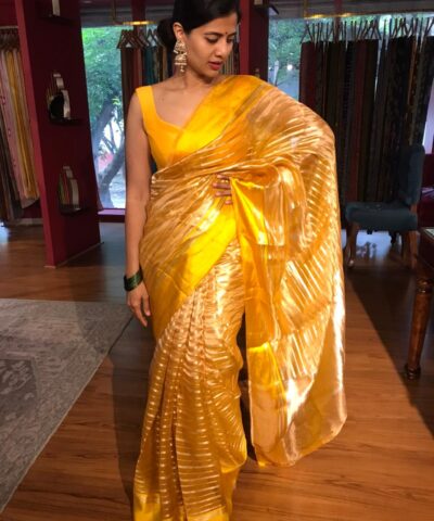 Haldi Yellow Handwoven Tissue Silk Saree with Satin Silk Border