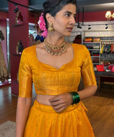 Mustard Yellow Silk Half Saree Set with Tissue Silk Dupatta (Set of 3)
