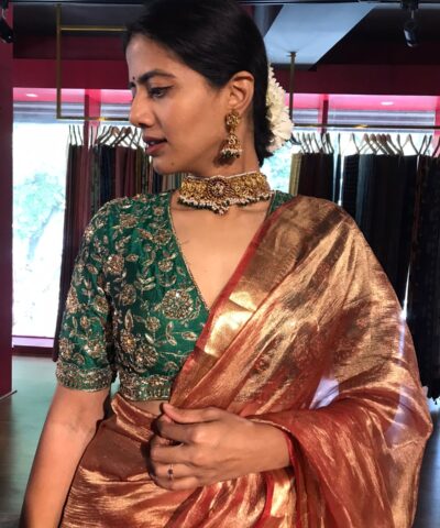 Bottle Green Handwoven Silk Blouse highlighted with Intricate Embroidery