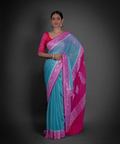 Mint Blue Pure Khaddi Banarasi Silk Saree in Chiffon woven in Silver Zari