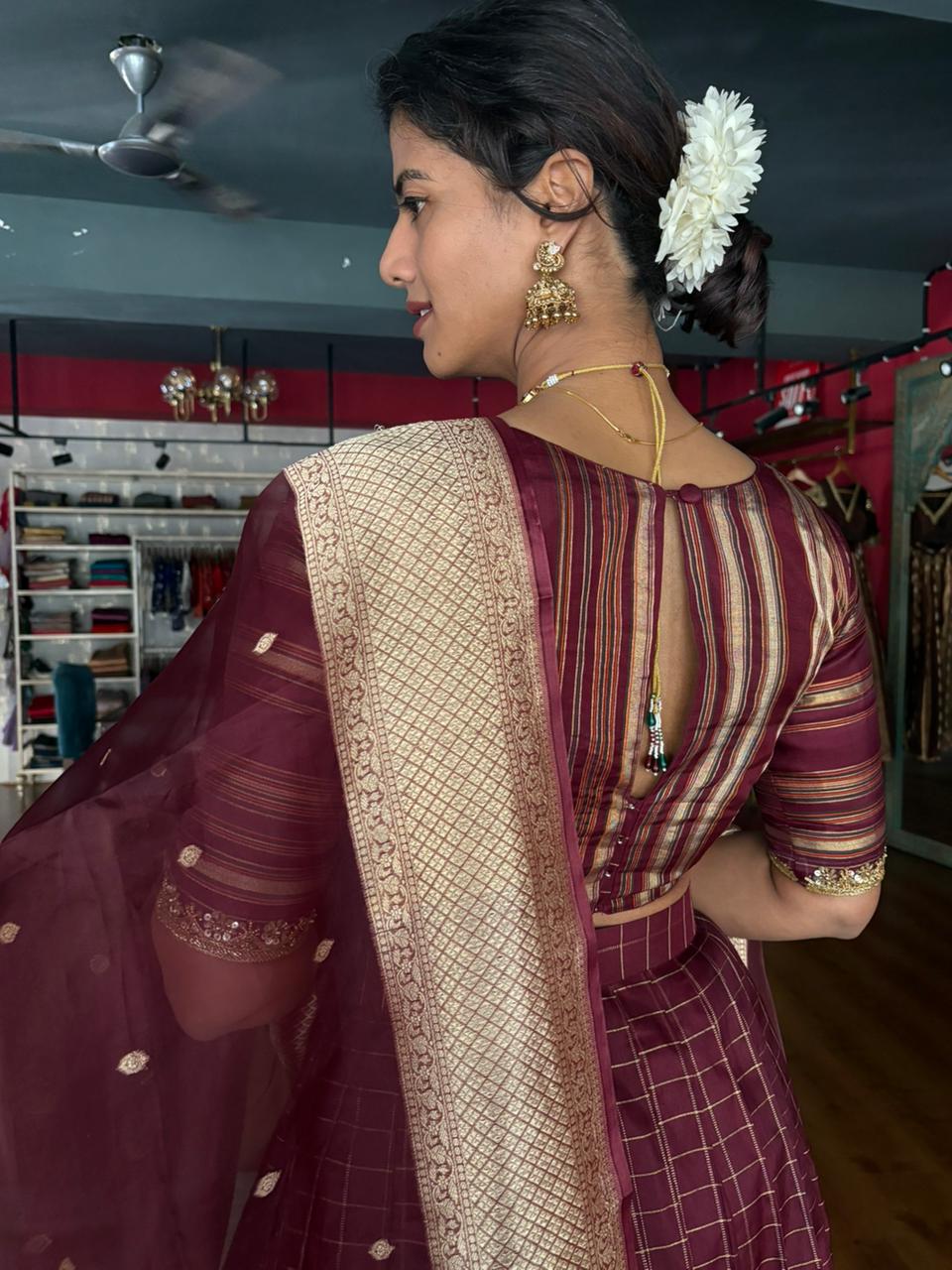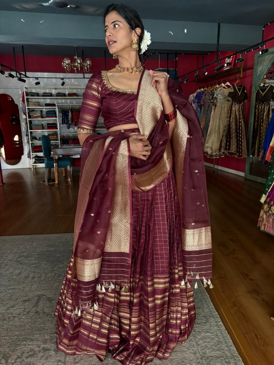 Arakku Brown Kanchivaram Silk Lehenga Set of 2