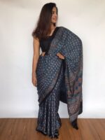 Be the first to review “Blue Pure Modal Silk Saree with Ajrakh Hand Block Prints”