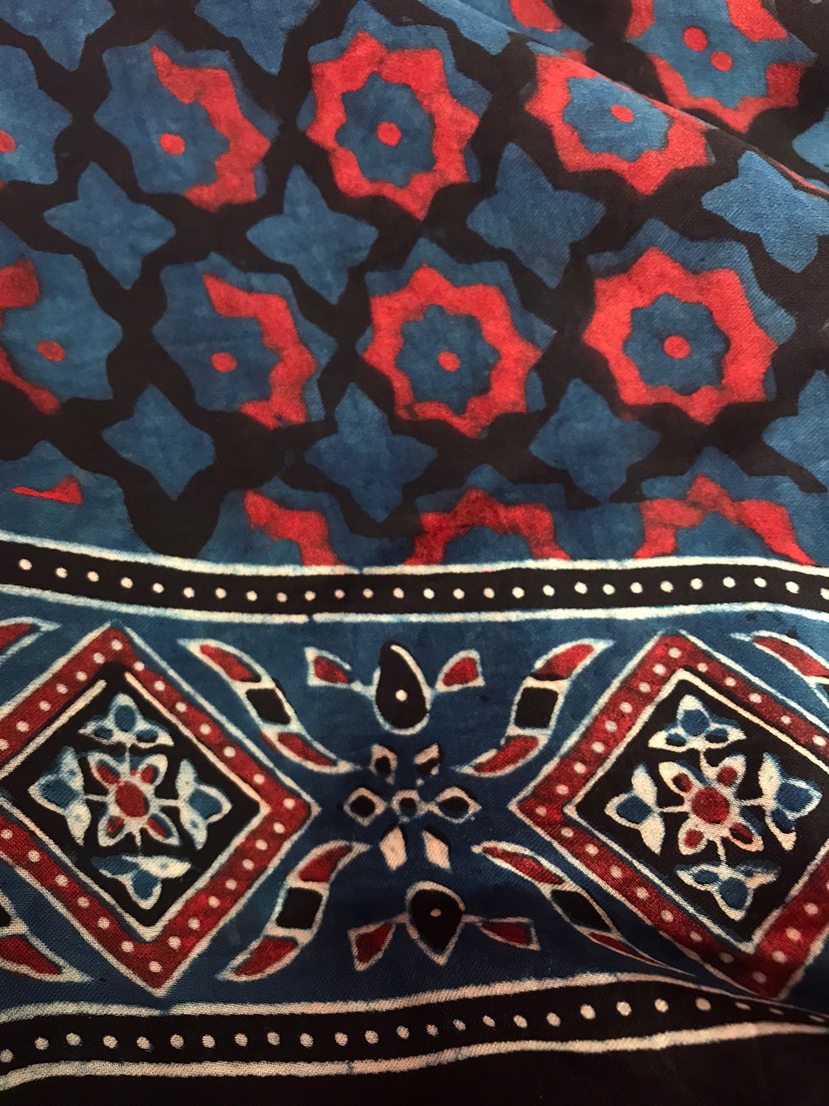 Be the first to review “Blue Pure Modal Silk Saree with Ajrakh Hand Block Prints”