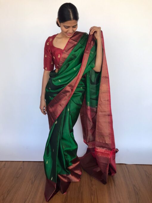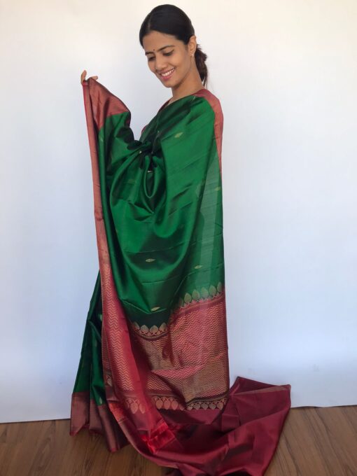 Bottle Green Kanjivaram Saree with Gold Zari Buttas
