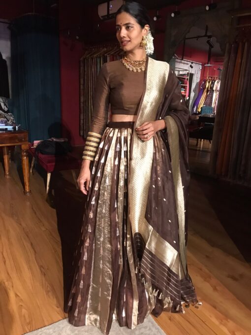 Brown Kora Tissue Lehenga Set of 2 Rs 20,000.00