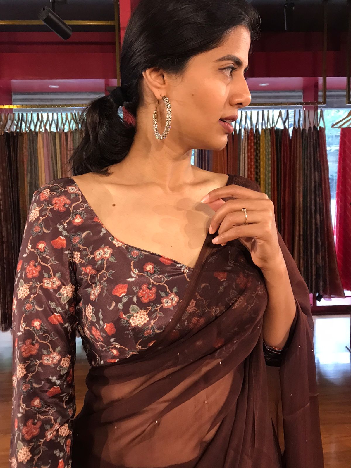 Be the first to review “Brown Printed Crepe Silk Blouse”