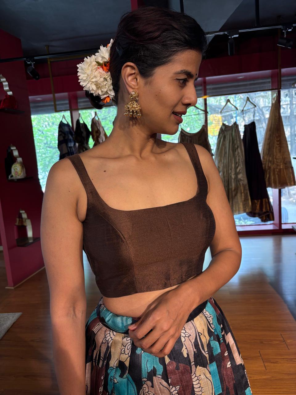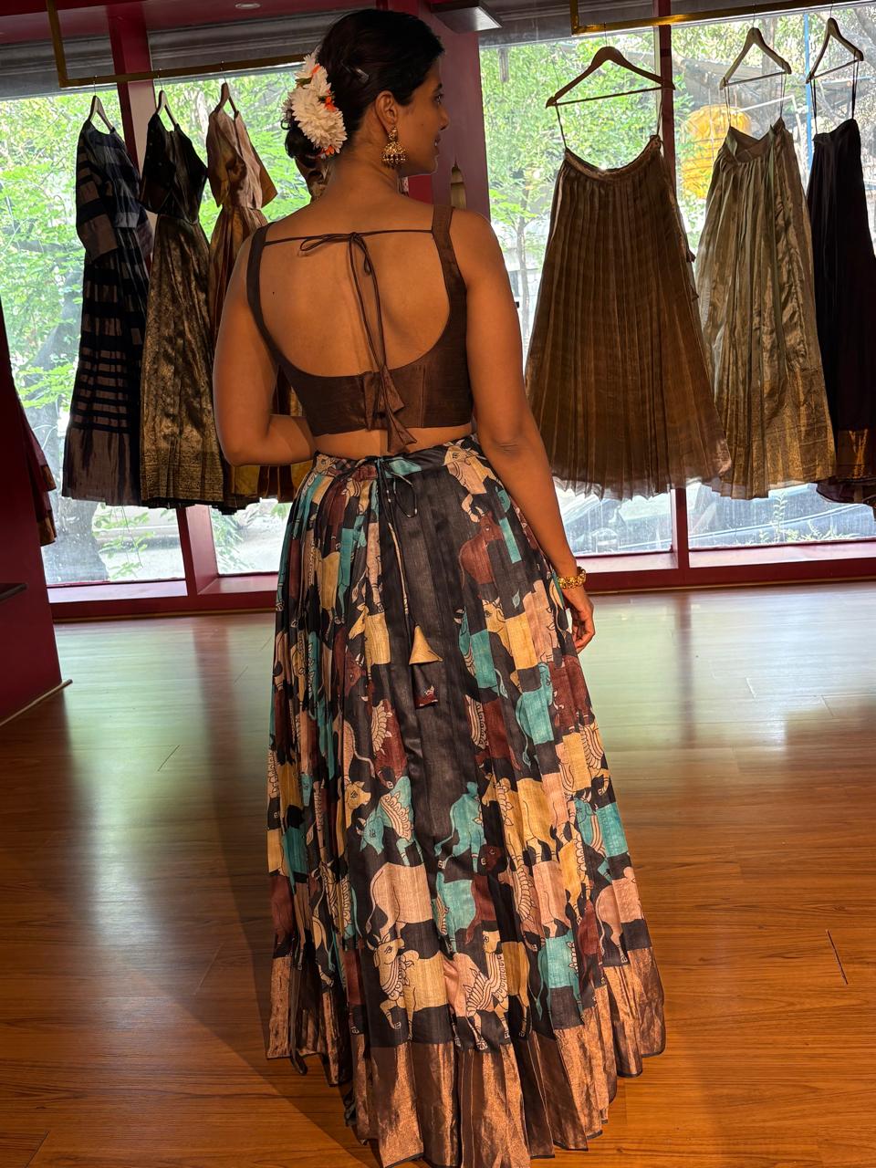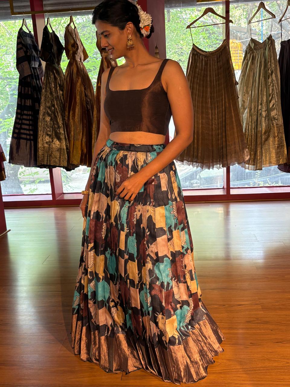 Be the first to review “Brown Printed Tussar Silk Lehenga Set of 2”