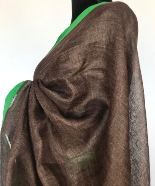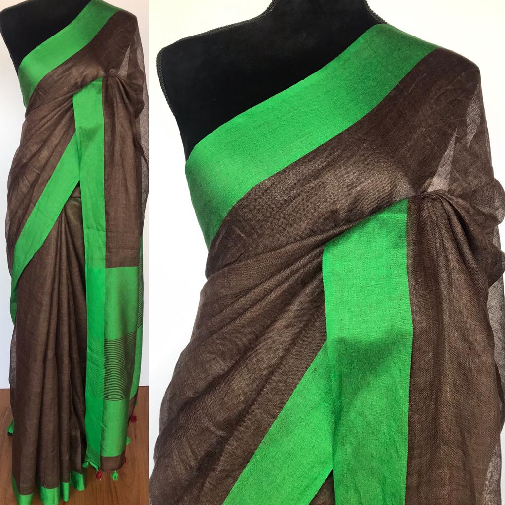 Brown Pure Linen Saree