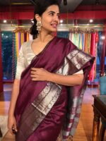 Be the first to review “Burgundy Mangalagiri Silk Saree with Kanchi Silk Border”