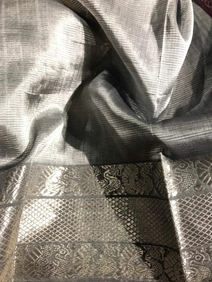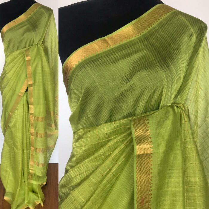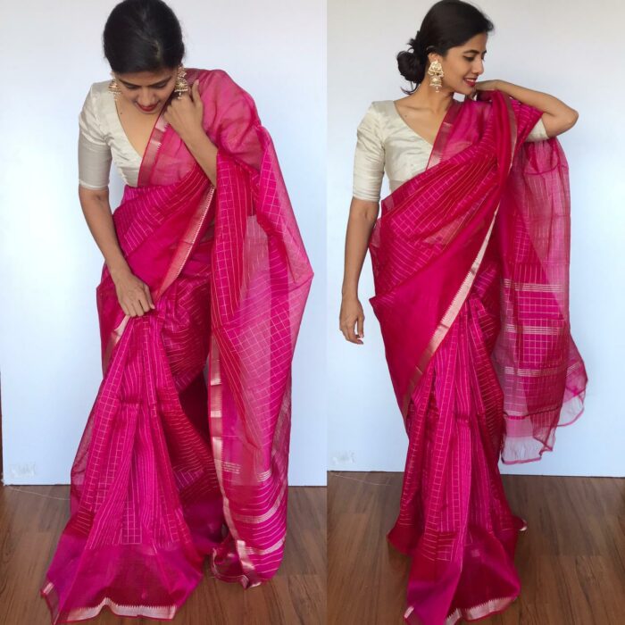 • Teamed up with contrast unstitched blouse in Mangalagiri Silk