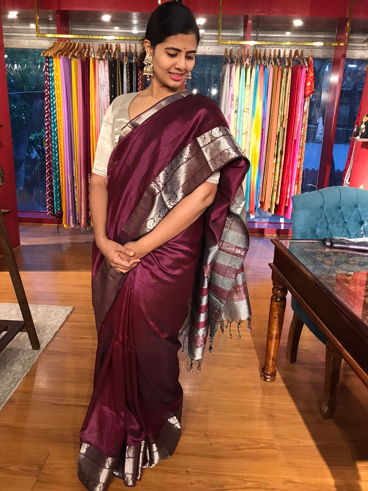 Burgundy Mangalagiri Silk Saree with Kanchi Silk Border