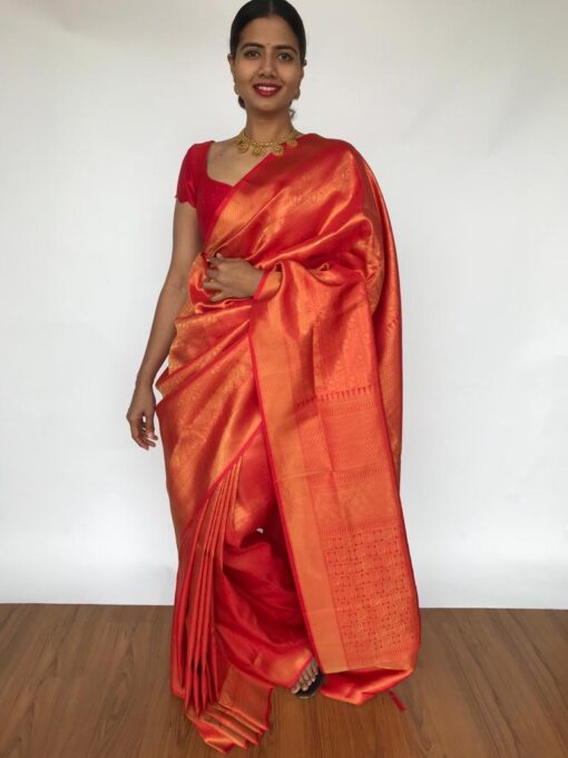Chilli Red Banarasi Silk Saree with Gold Zari Weaves