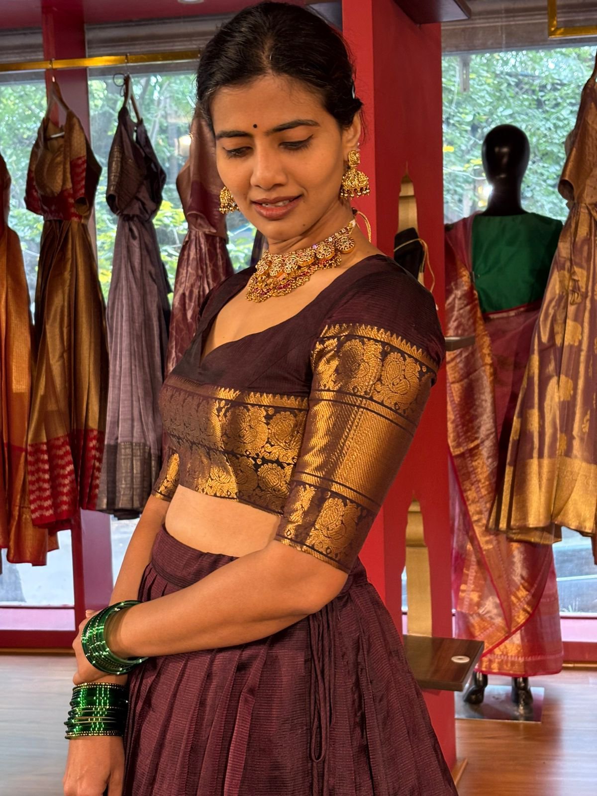Coffee Brown Silk Lehenga with Organza Dupatta (Set of 3)
