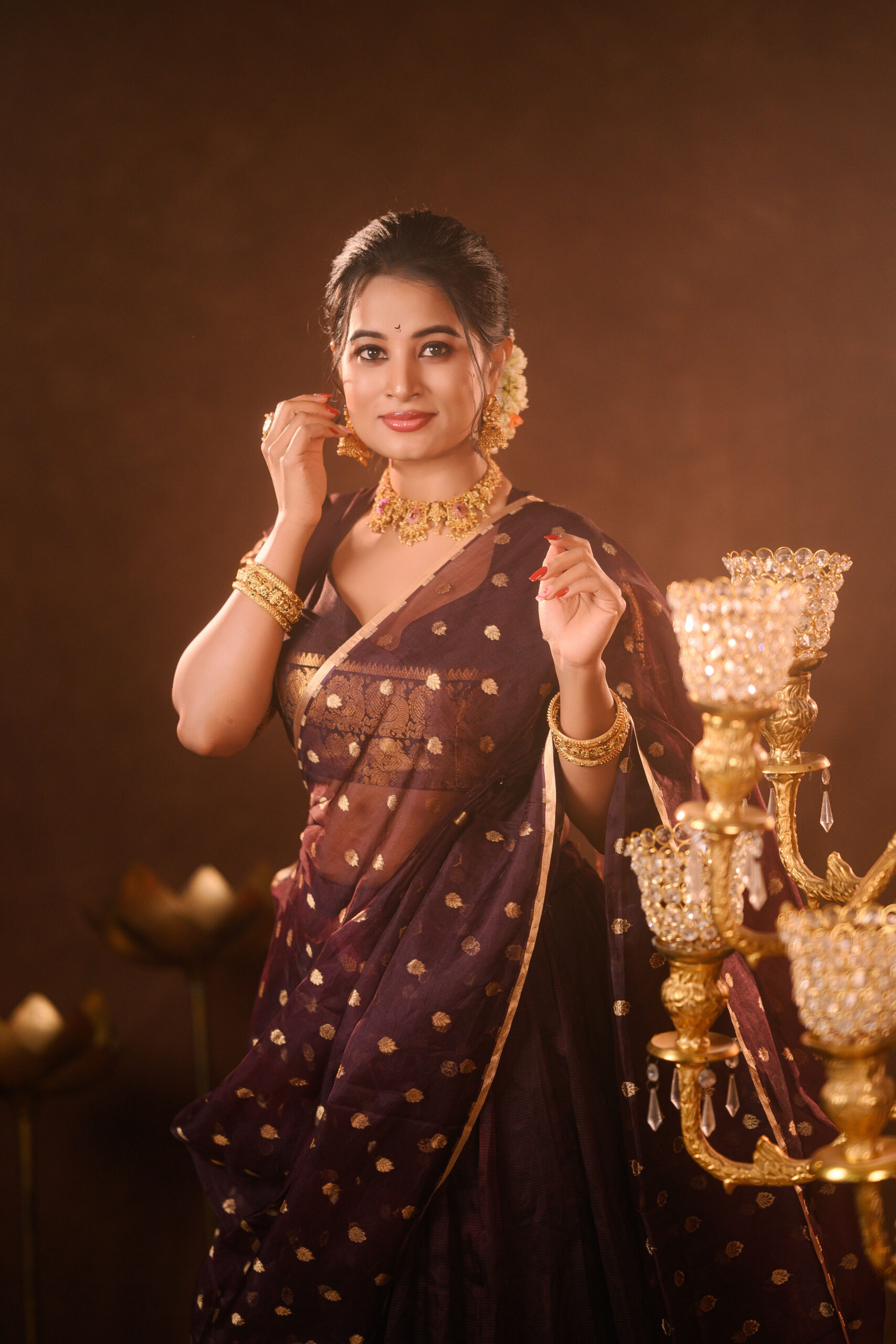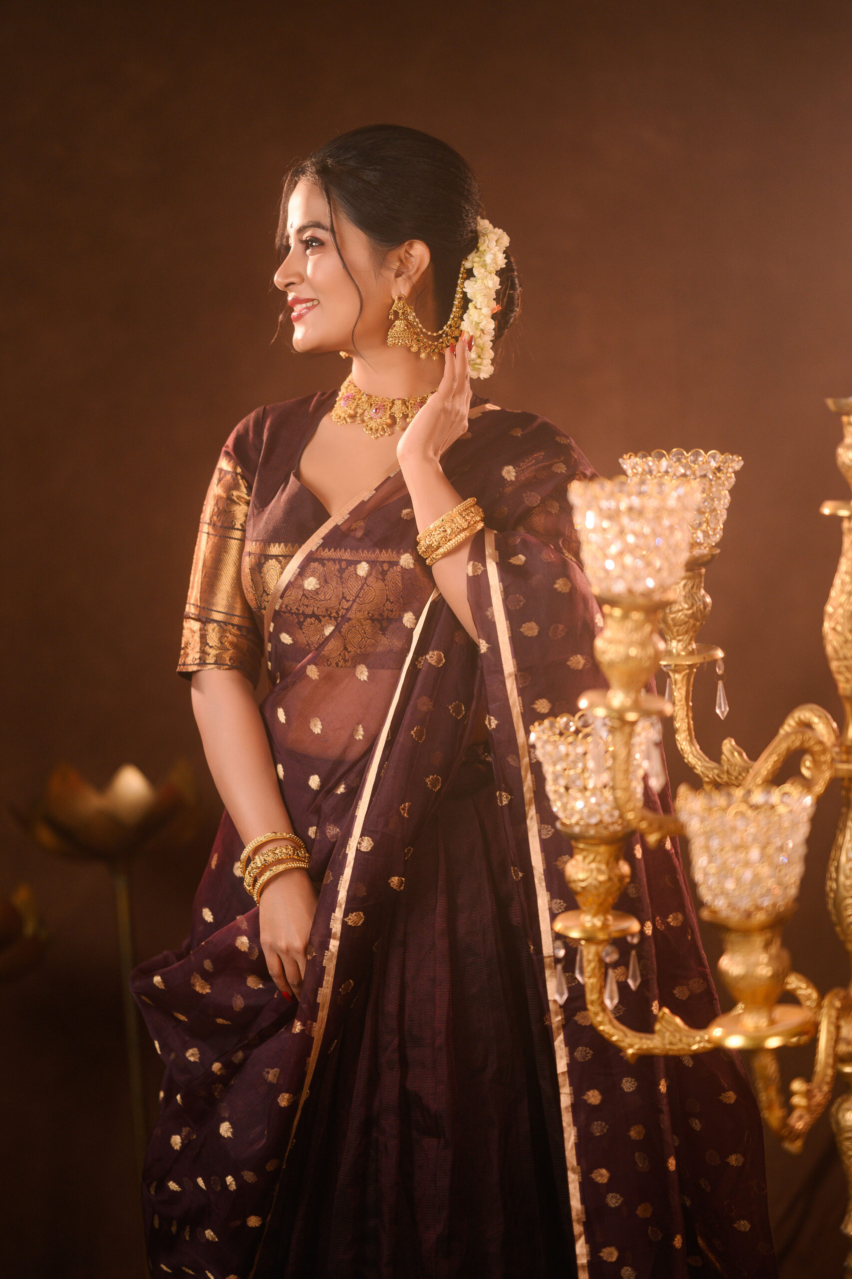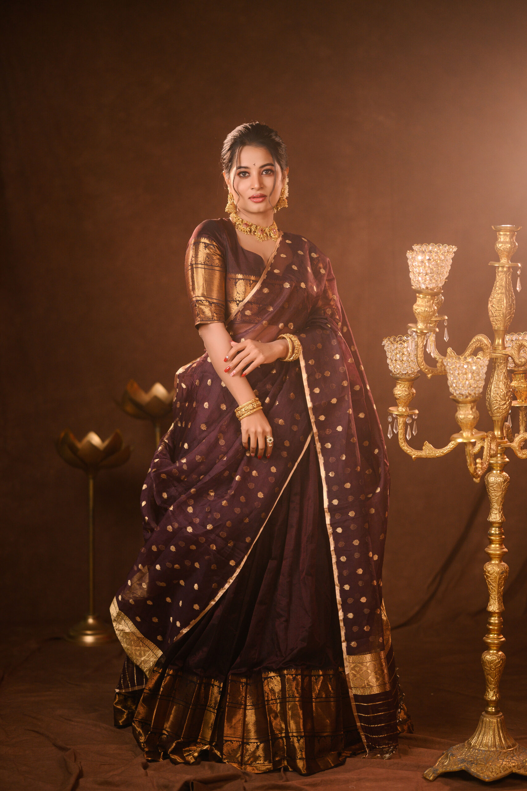 Coffee Brown Silk Lehenga with Organza Dupatta (Set of 3)