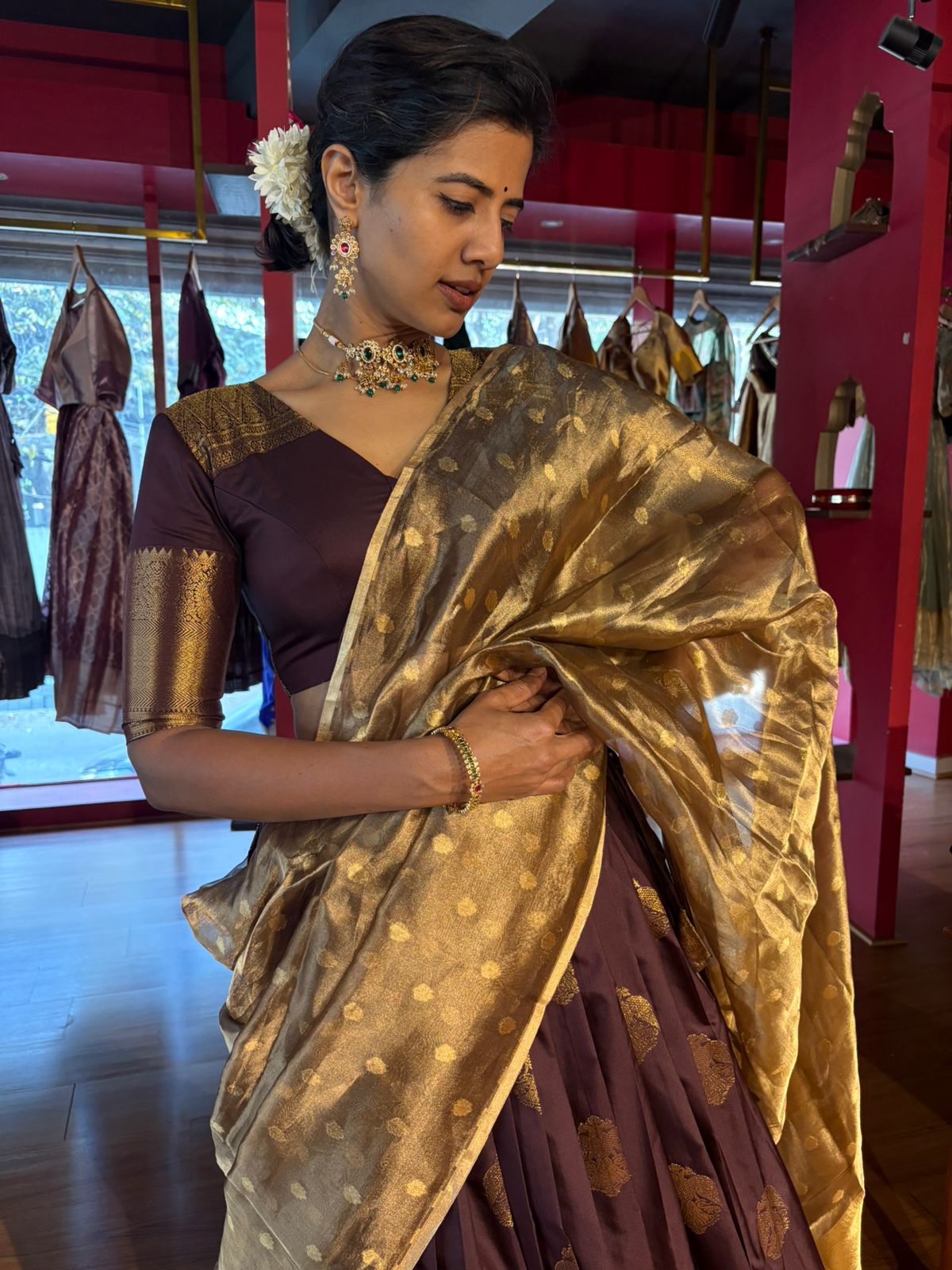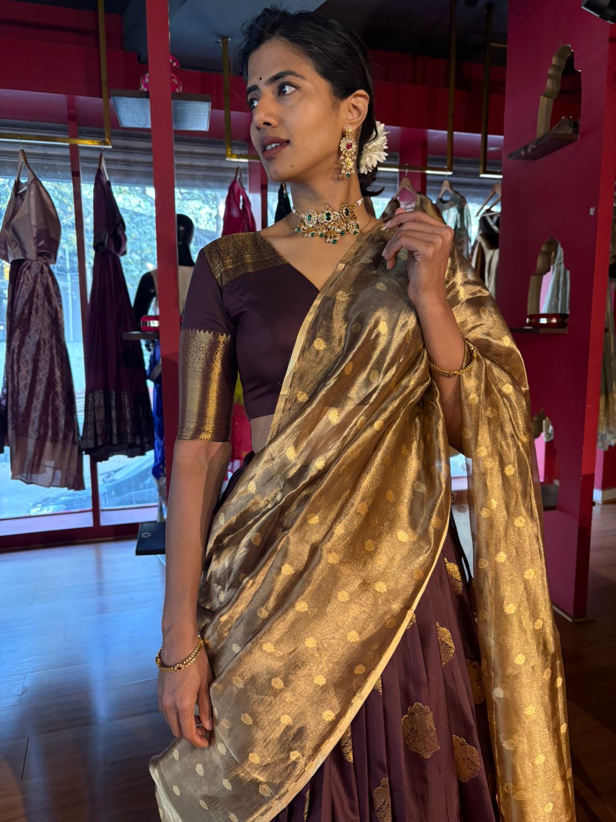 Dark Brown Silk Lehenga Set Of 2 Rs 14,000.00