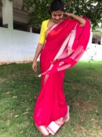 Be the first to review “Fuschia Pink Chiffon Silk Saree adorned with Antique Zari Weaves”