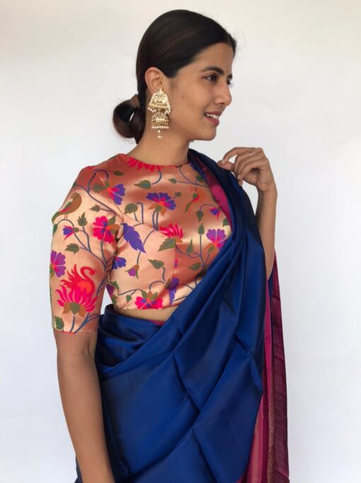 Be the first to review “Gold Banarasi Silk Paithani Blouse”