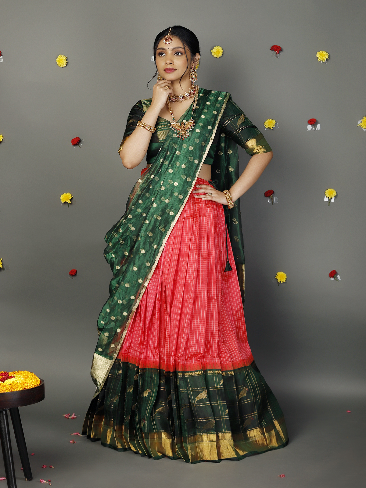 • Handwoven Silk Lehenga comes with Silk Blouse And Tissue Silk Dupatta
