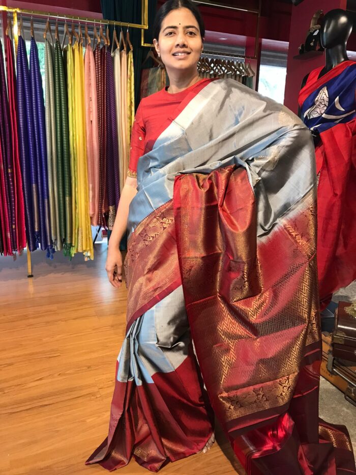 Be the first to review “Grey Kanjivaram Silk Saree with Handwoven Gold zari weaves”