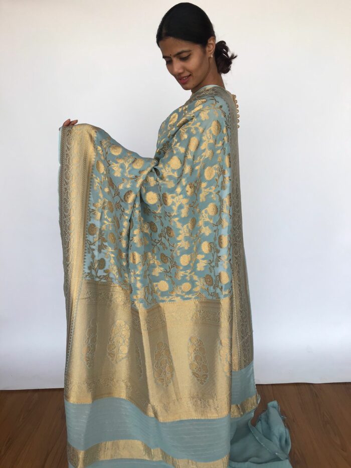Ice Blue Banarasi Georgette with Woven Floral Weaves