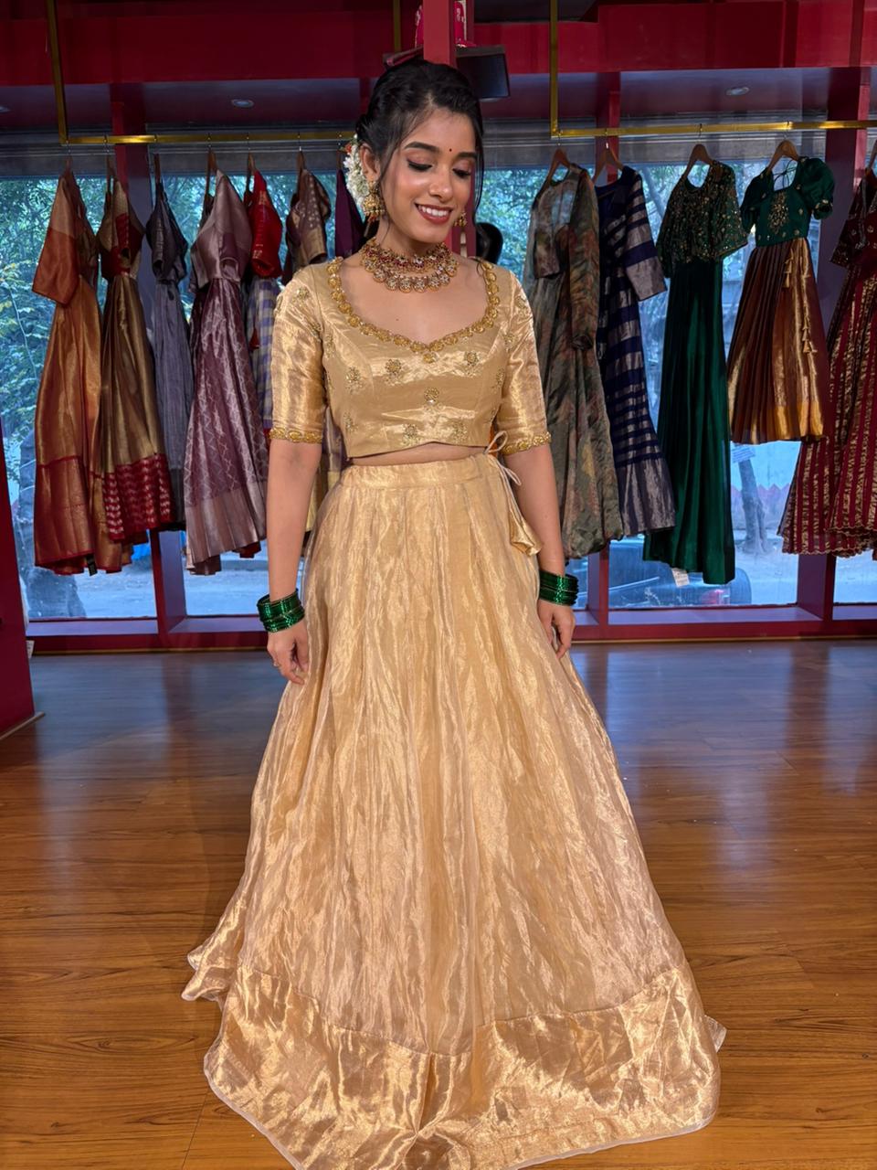 Ivory Embroidered Tissue Silk Lehenga Set of 3