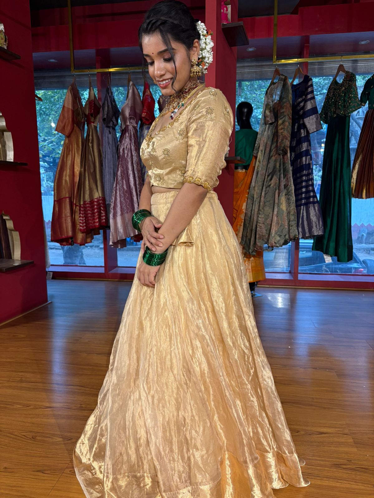 Ivory Embroidered Tissue Silk Lehenga Set of 2