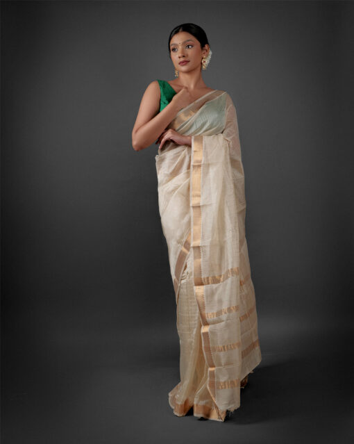Ivory Handwoven Chequered Mangalagiri Silk Saree