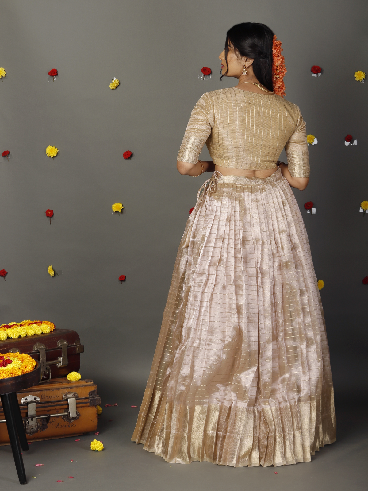 Ivory Striped Tissue Silk Lehenga Set of 2