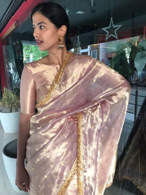 Baby Pink Tissue Silk Saree with Gota Border Detailing