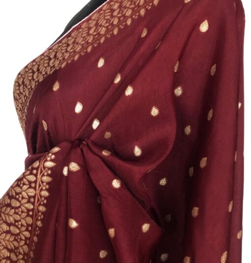 • Maroon Banarasi Silk Saree in Georgette with Gotapatti Jaquard Weaves