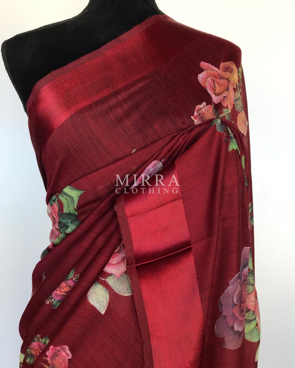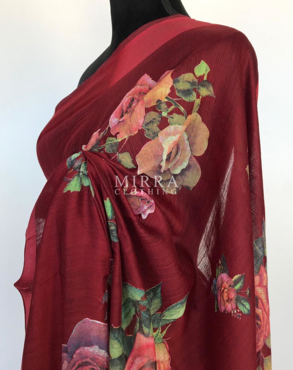 • Maroon Linen Cotton Saree is blend of Linen and Cotton and is Digitally Printed